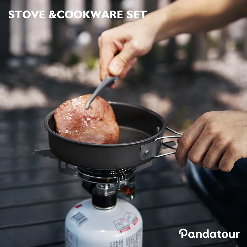 - محتويات الطقم:قدر عميق بغطاء-مقلاة-موقد تخييم قابل للطي-شوكة +ملعقة قابلة للطي.