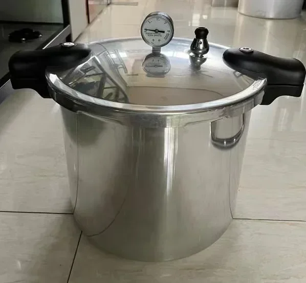 طنجرة ضغط كبيرة مصممة للعمل الشاق والاستخدام التجاري والمنزلي بسعة واسعة تتيح لك طهي كميات كبيرة بسهولة ومصنوعة من الألومنيوم المتين الذي يتحمل الحرارة العالية وتوزع الحرارة بشكل متساوى لضمان نضج الطعام بسرعة .