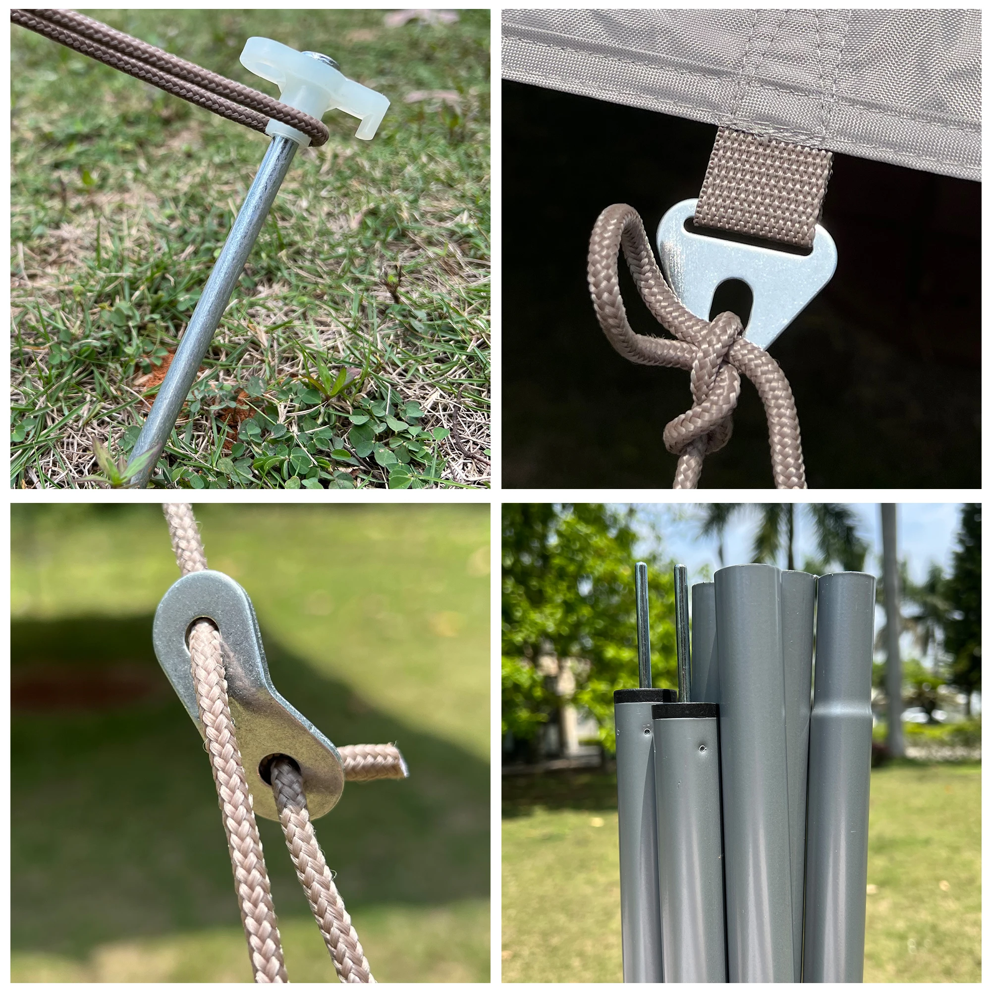 • نقاط التثبيت: حبال متينة وأوتاد أرضية ثابتة.