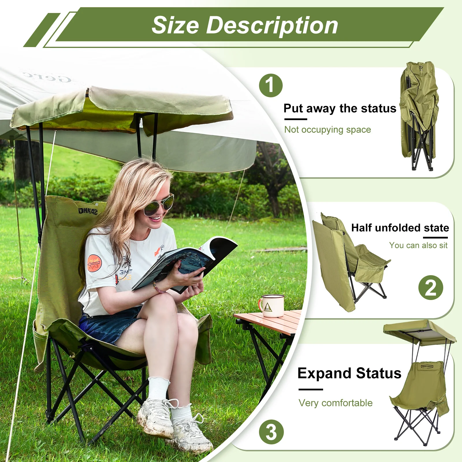 يمنحك كرسي تخييم محمول من Young Wood تجربة جلوس فاخرة في الهواء الطلق بفضل تصميمه المزود بمظلة ظل واسعة تحميك من الشمس وتمنحك راحة استثنائية أثناء التخييم والرحلات.